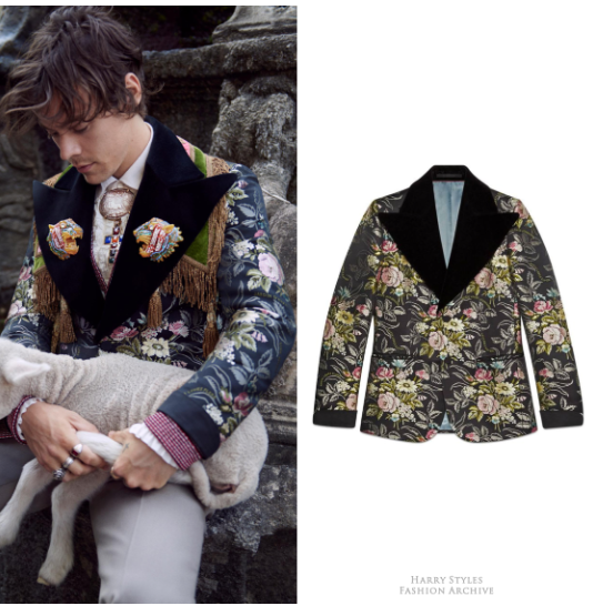 이 재킷은 구찌의 최근 컬렉션에서 볼 수 있는 과감한 플로럴 패턴을 사용한 아이템입니다.