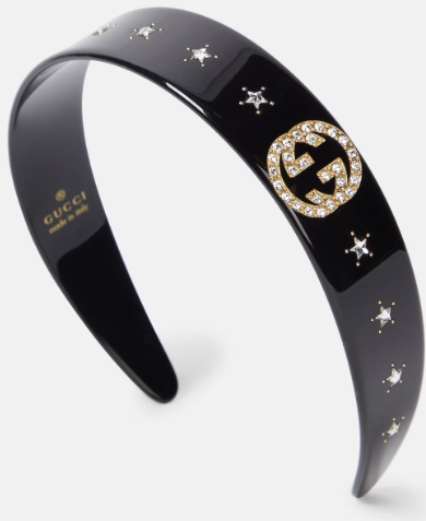 크리스탈 장식 헤어밴드는 구찌의 장식적인 디자인 스타일을 잘 보여주는 아이템입니다.