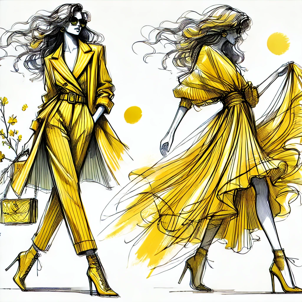 패션 디자인에서 노란색은 활기, 긍정, 창의성, 그리고 희망을 상징합니다.
