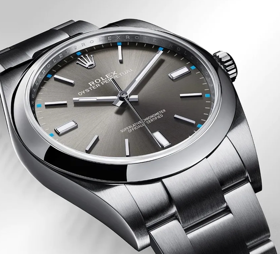 롤렉스의 오이스터 퍼페츄얼 모델을 착용한 것입니다.