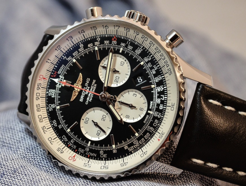 나비타이머는 비행 거리, 속도, 연료 소모 등을 계산할 수 있는 회전형 슬라이드 룰을 탑재한 시계로,