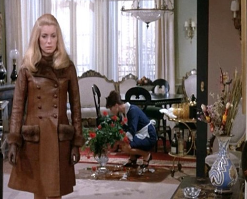 그녀가 영화 세브린느(Belle de Jour, 1967)에서 입고 나온 의상은 입생로랑의 대담한 디자인을 잘 보여줍니다.