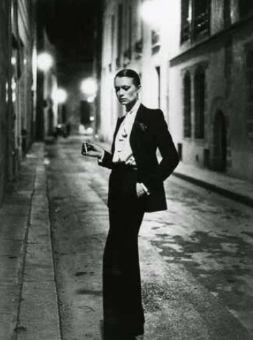 예를 들어, 1966년 그는 여성용 턱시도 "르 스모킹(Le Smoking)"을 선보여 큰 화제를 불러일으켰습니다.