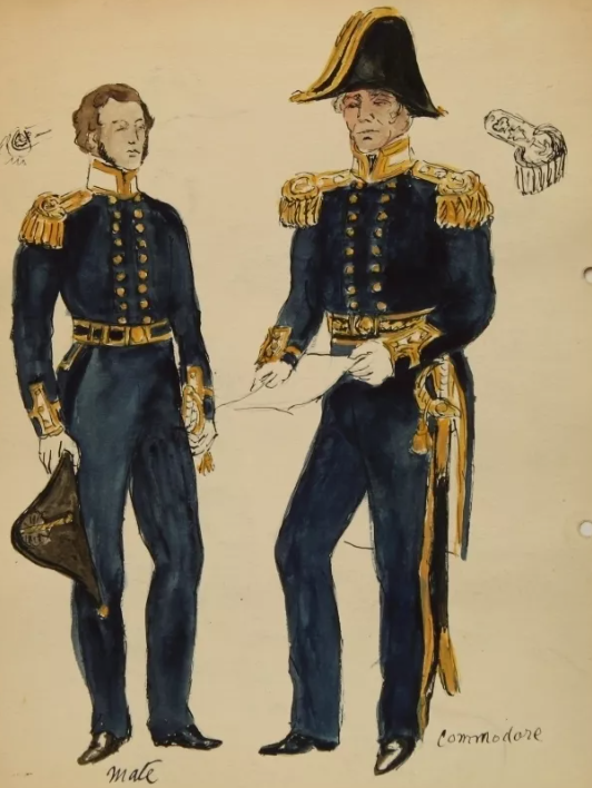 이에 따라 선원들은 네이비 블루 색상의 단추가 달린 재킷을 맞춰 입었습니다.