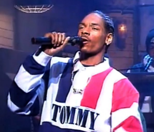 스눕 독(Snoop Dogg)이 1994년 미국 인기 토크쇼 "Saturday Night Live"에서 타미 힐피거의 컬러풀한 스웨터를 입은 후,