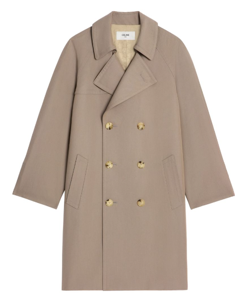 셀린느의 트렌치코트는 여성스러운 실루엣과 우아한 터치를 결합해 현대적 감각을 더합니다.