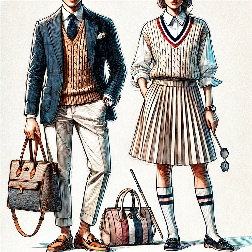 주요 아이템으로는 블레이저, 버튼다운 셔츠, 카디건, 테일러드 팬츠, 테니스 스커트, 로퍼, 폴로 셔츠 등이 포함되며,